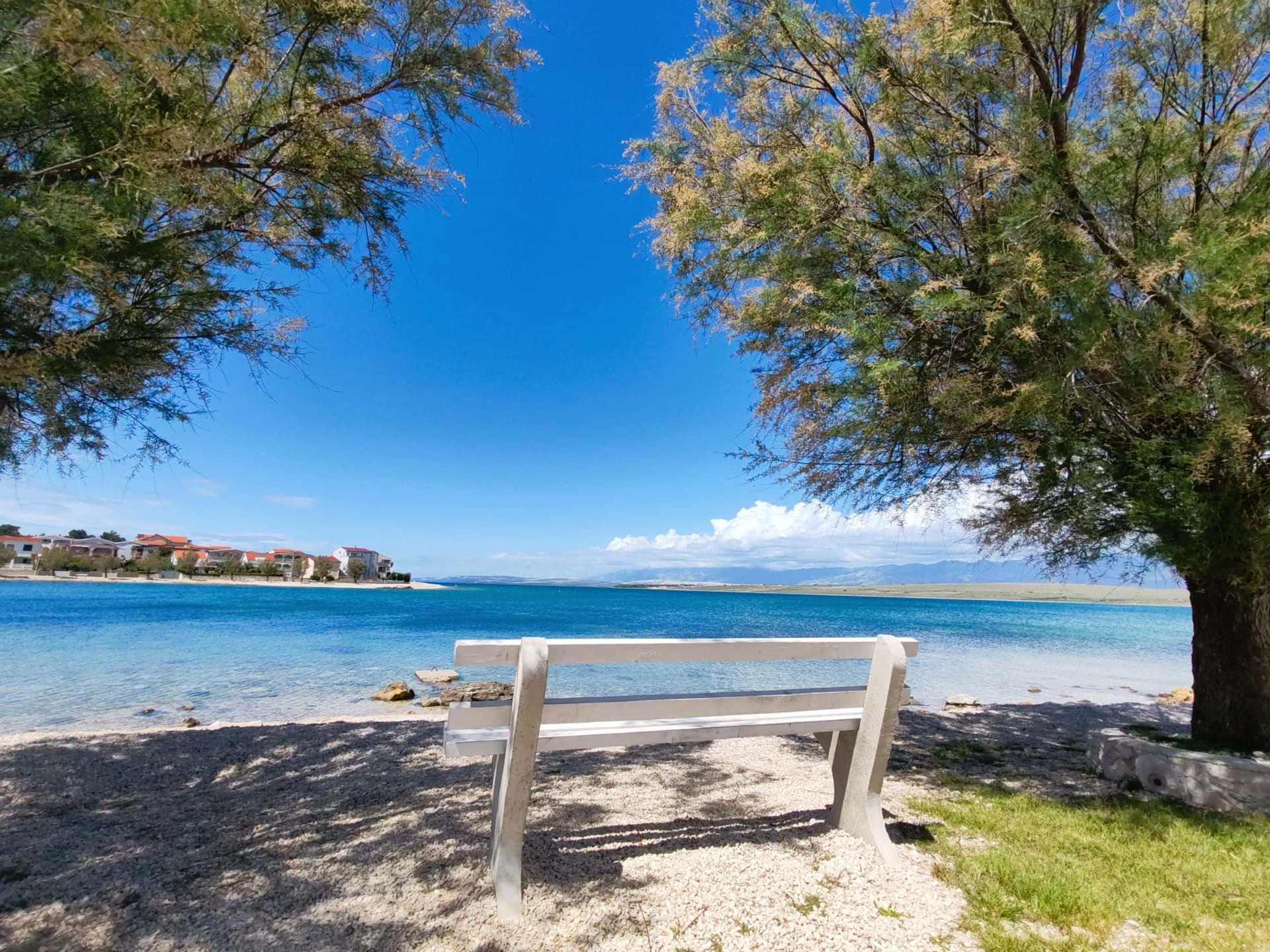 Nejbližší pláž je 290 m od domu, je kamínkovová s pozvoným vstupem do vody a úchvatným výhledem na pohoří Velebit.